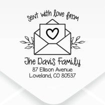 Send your love in every outgoing letter with heart address stamps. Our line of personalized address stamps perfectly imprints your mailing info in your chosen design. Simply pick your favorite style, add your return address, and select an ink color. Your mail recipients will love to receive a letter or card adorned with a fun address stamp!