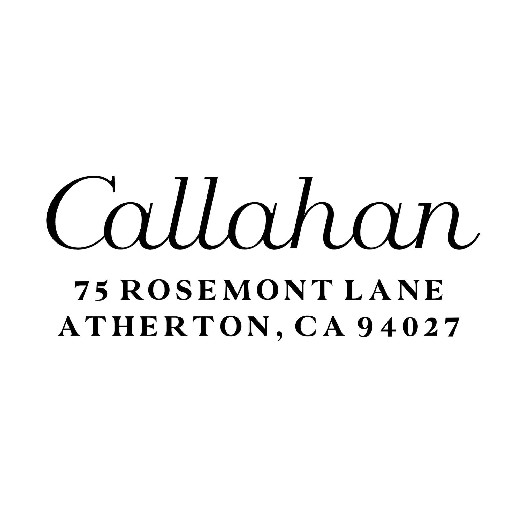 Make your mark without the repeat writing. This italic serif custom address stamp gives your name a graceful headline and sets your address with balanced spacing, so every envelope looks intentional and easy to read. It turns cards, invitations, announcements, and everyday letters into mail you are proud to send.
