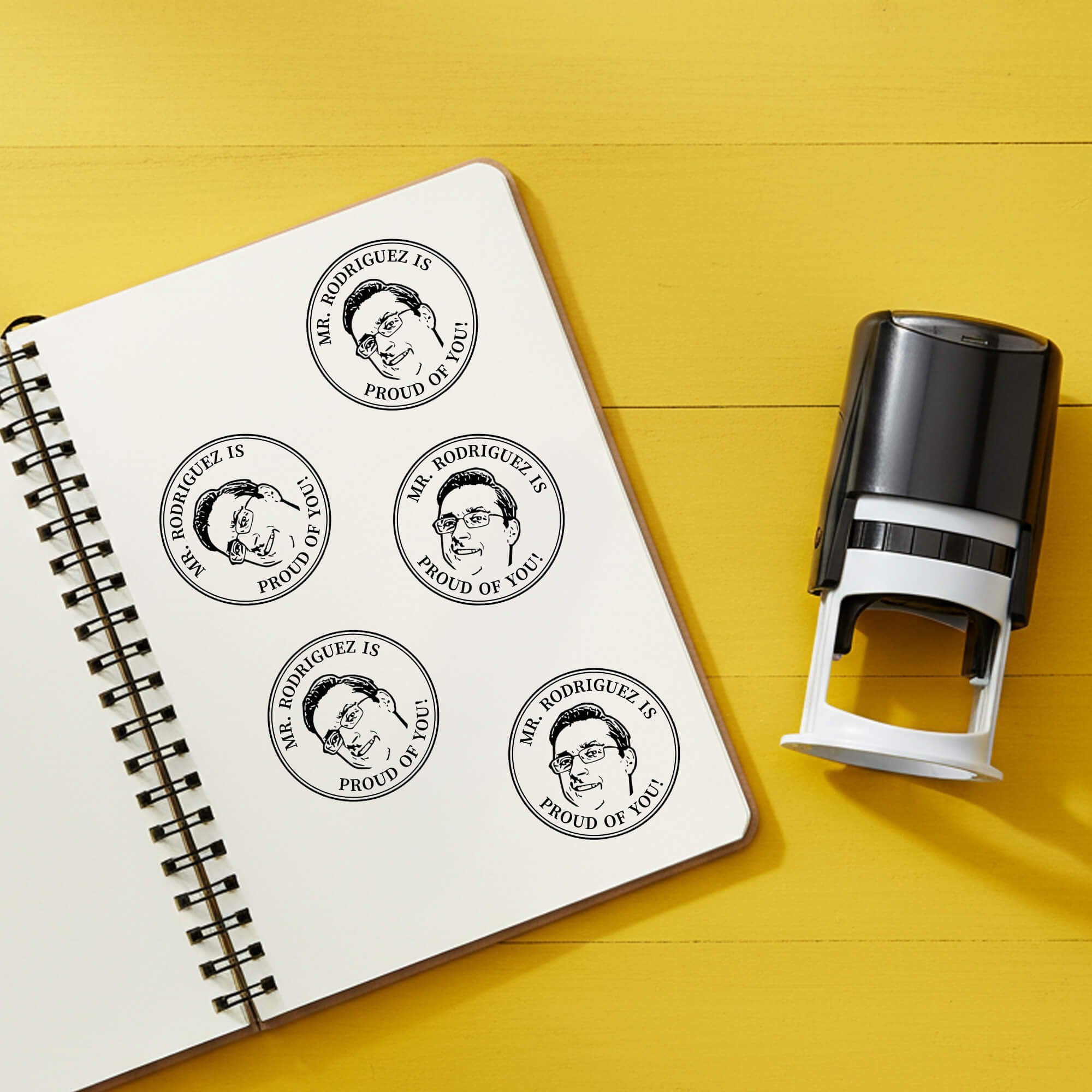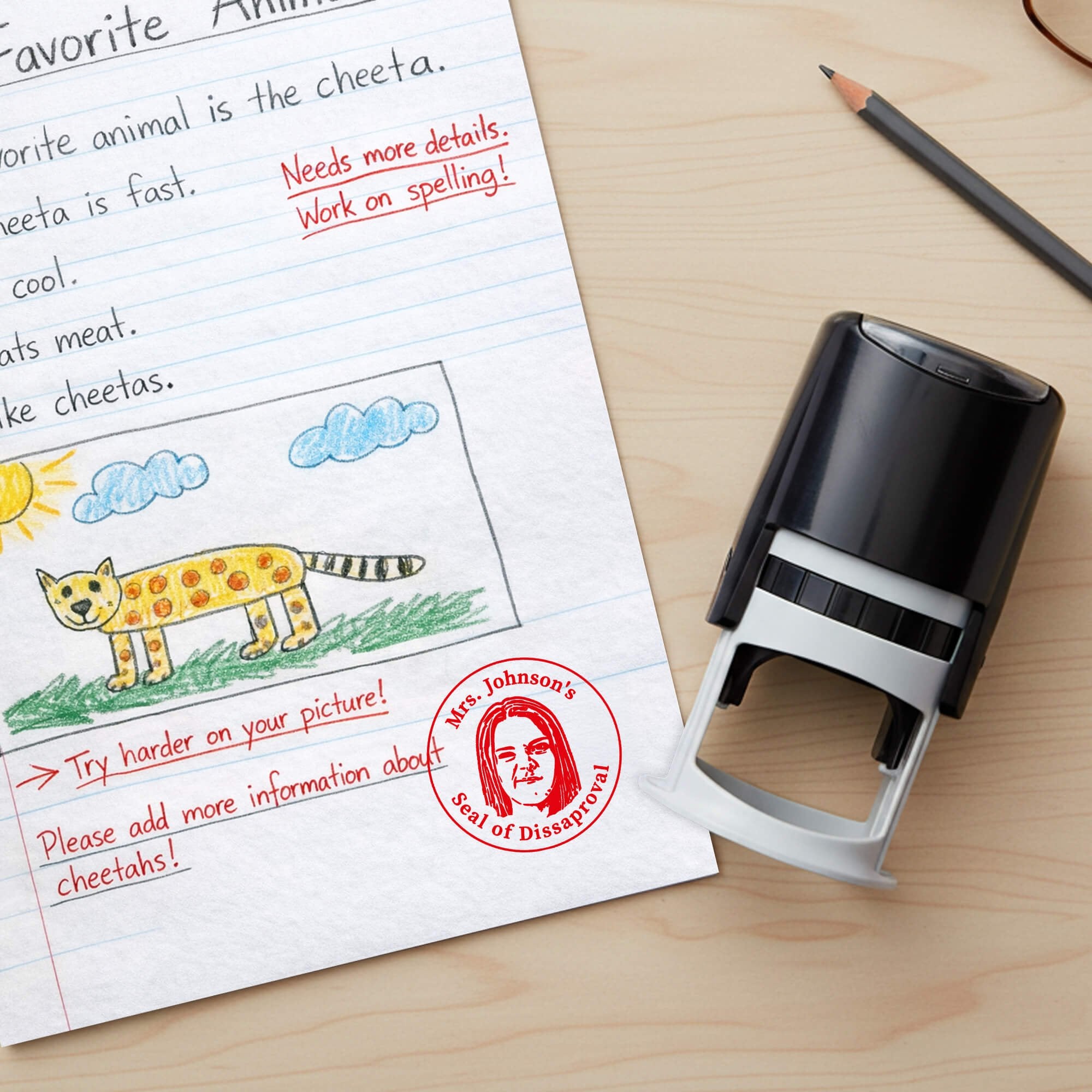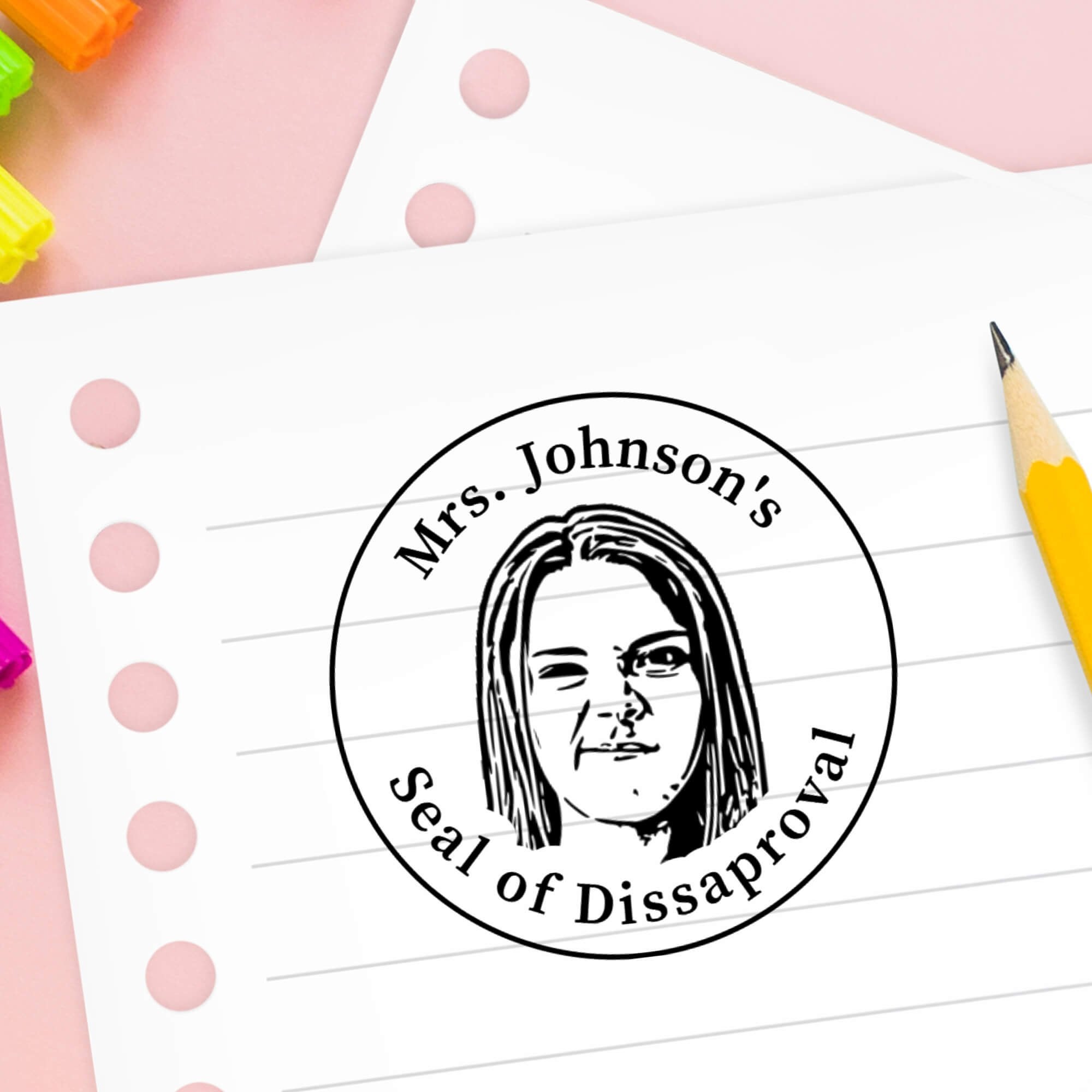 Designed specifically for teachers, this circular stamp layout pairs your custom face with classroom-friendly messaging, making it perfect for quick feedback while still creating a lasting impression. Whether you are grading a stack of papers or recognizing great work, this stamp helps you connect with your students in a way that stands out.