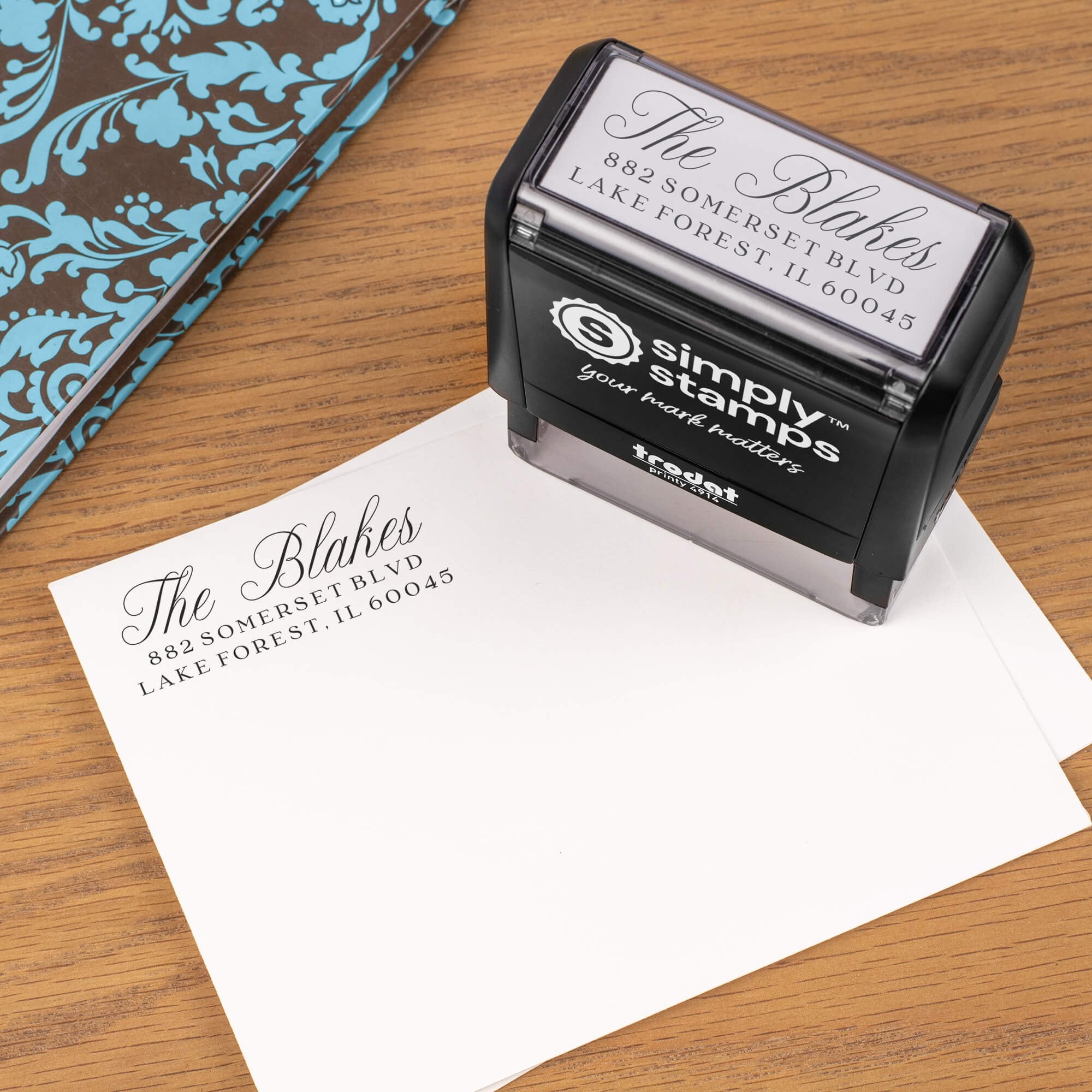 Skip the repeat writing and give every envelope a graceful introduction. This custom address stamp features an elegant calligraphy name paired with crisp address lines, so your mail looks intentional from wedding invitations to everyday letters. It solves the busy work, keeps your look consistent, and adds a touch of ceremony to every send.