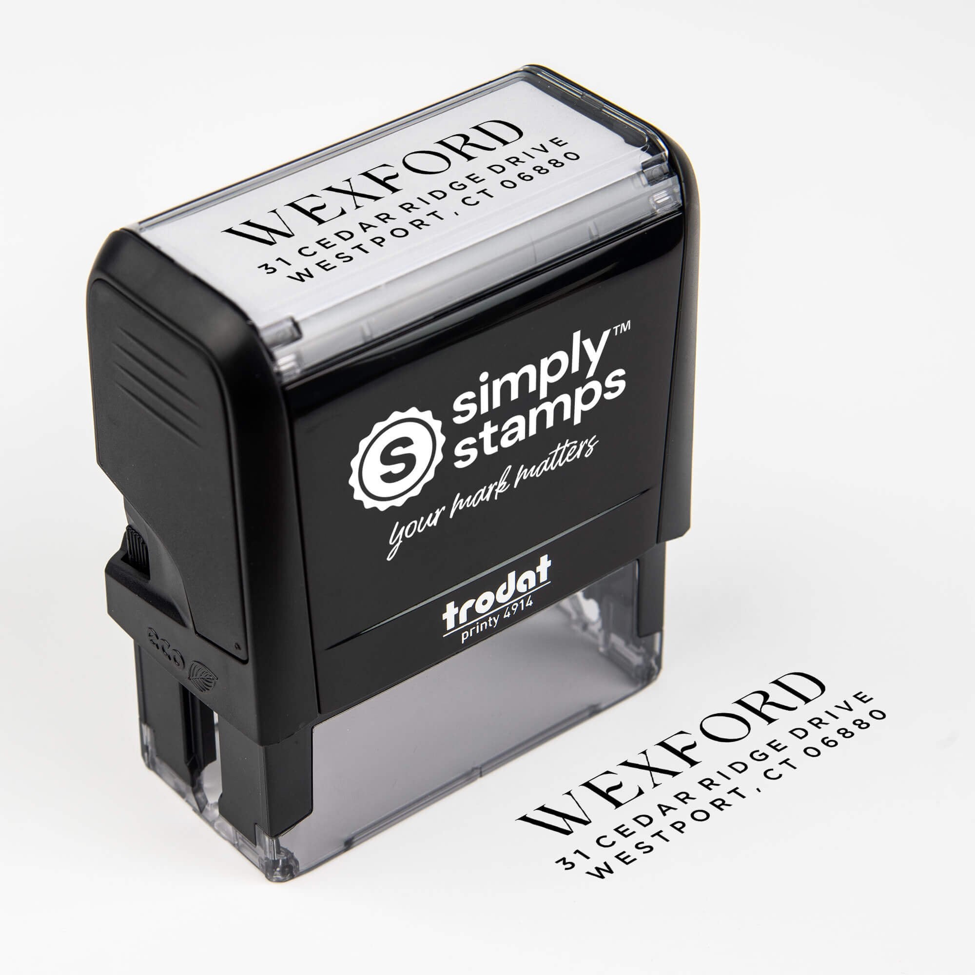 Think estate letterhead for everyday life. This custom address stamp sets your family name in elegant serif caps with two crisp address lines below, so every envelope feels intentional and ready to send. It saves time, gives each piece a matching return address, and brings a touch of editorial polish to cards and letters.