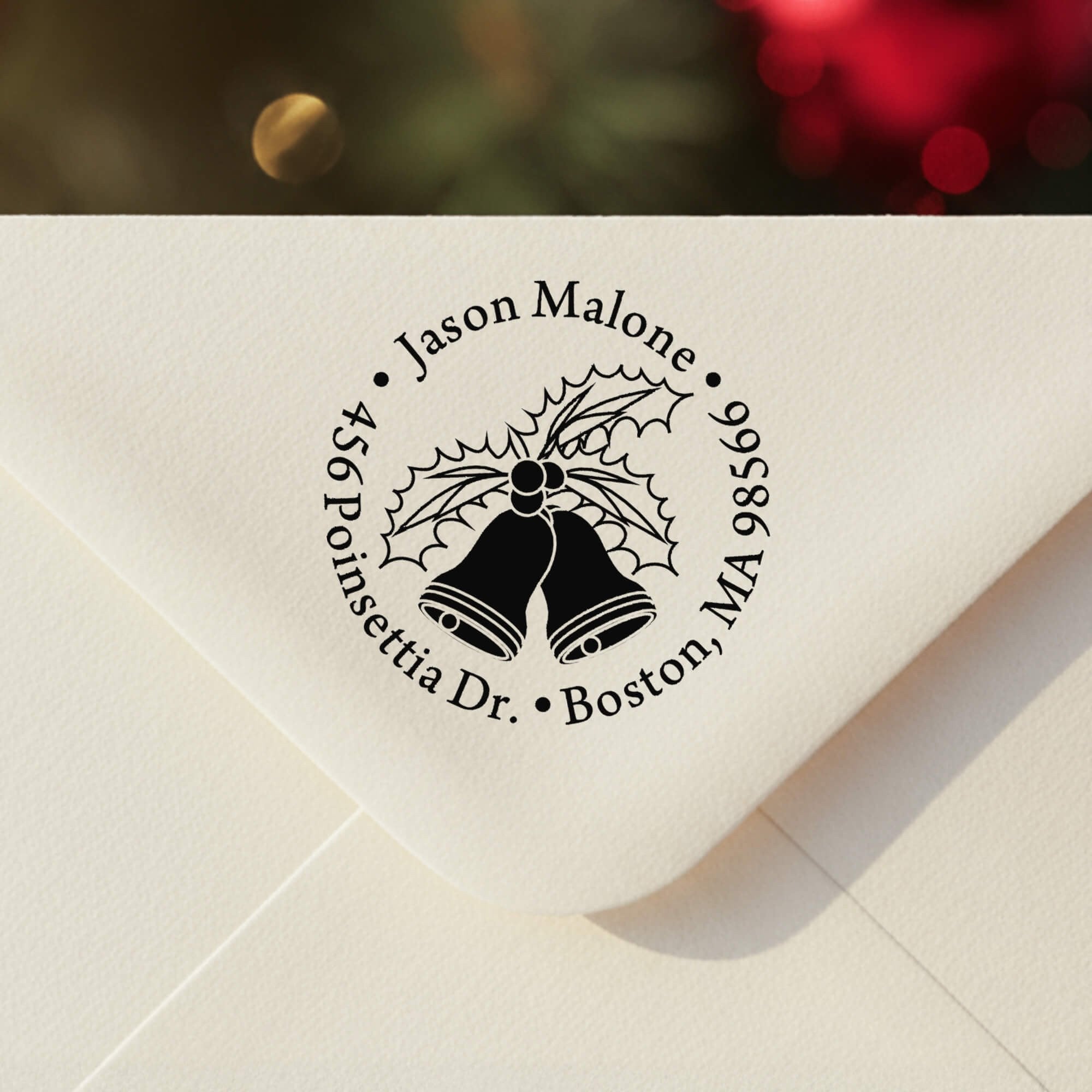 - Holly Bells Holiday Return Address Stamp
