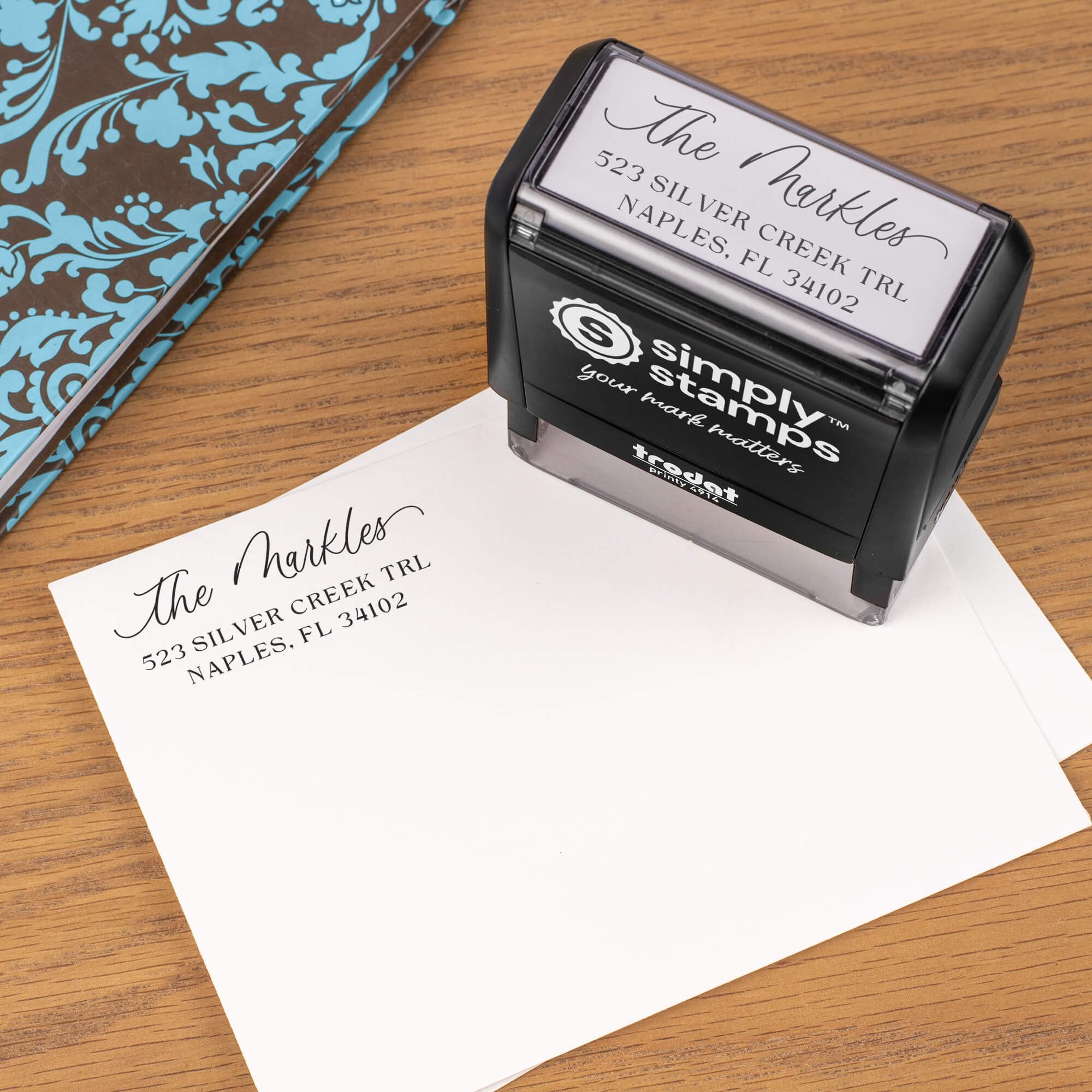 Skip repeat writing and give every envelope a clean, matching return address. This custom address stamp puts your family name in elegant script and sets your address with clear spacing, so your mail looks intentional and ready to send. It is perfect for wedding invitations, holiday cards, thank you notes, and everyday letters.