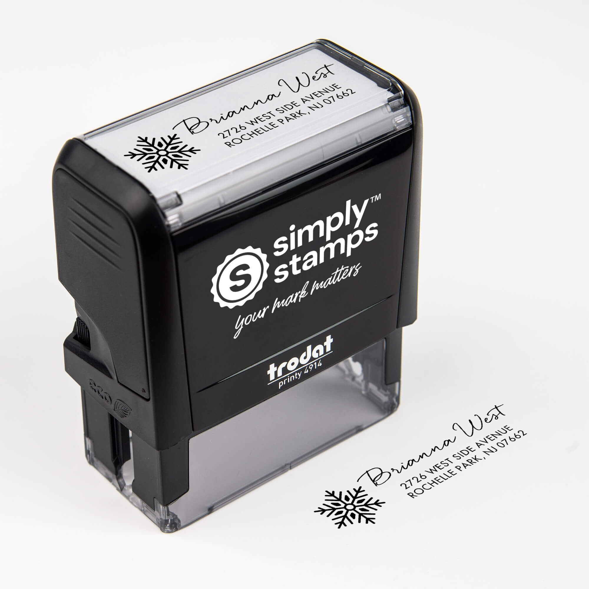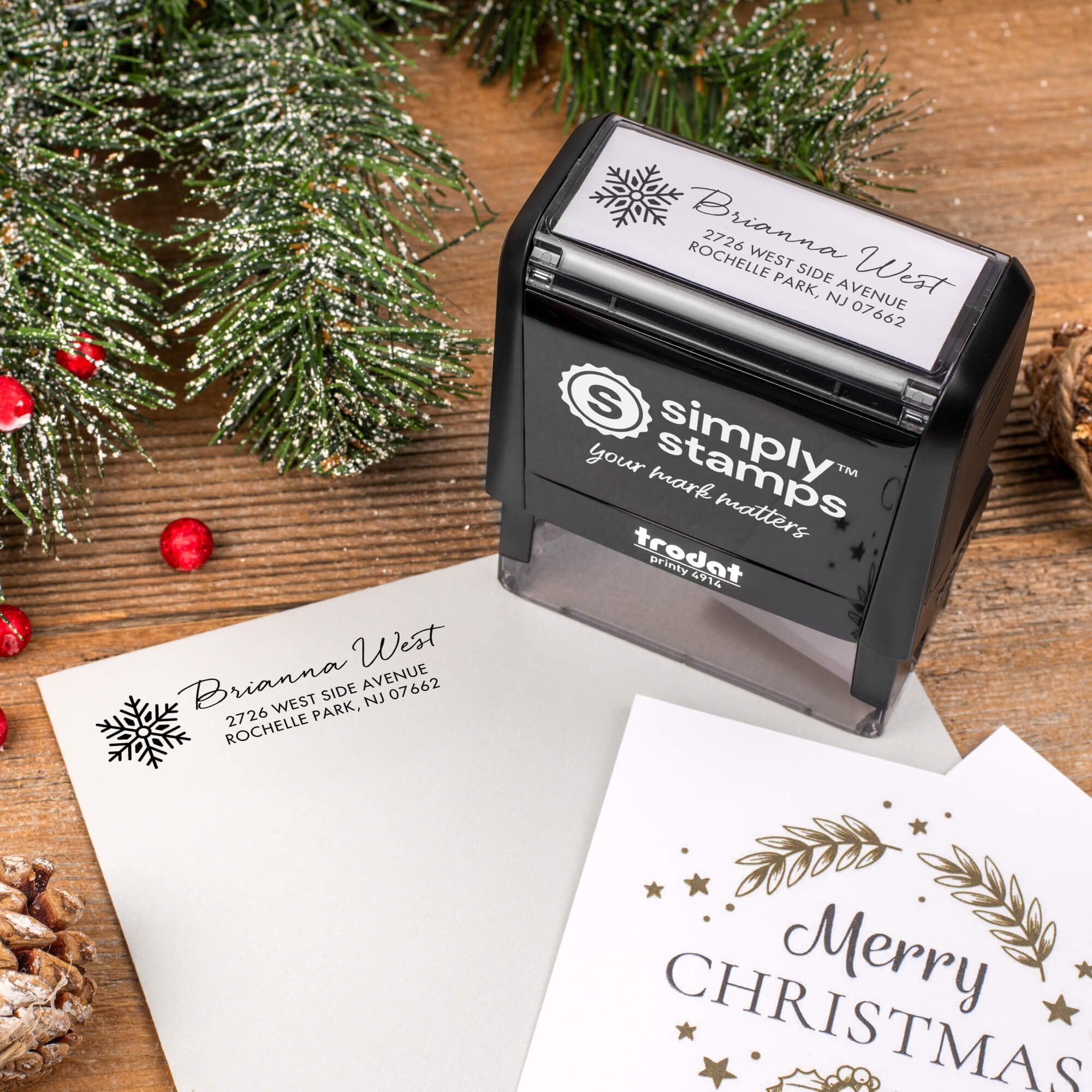 Each stamp is custom-made with your family name and return address, ensuring clean, consistent impressions every time. Choose between self-inking, pre-inked, or traditional wood handle formats, and pick an ink color that fits your style. Proudly made in the USA, this snowflake stamp delivers thousands of impressions, making it a reliable favorite for years of holiday celebrations.