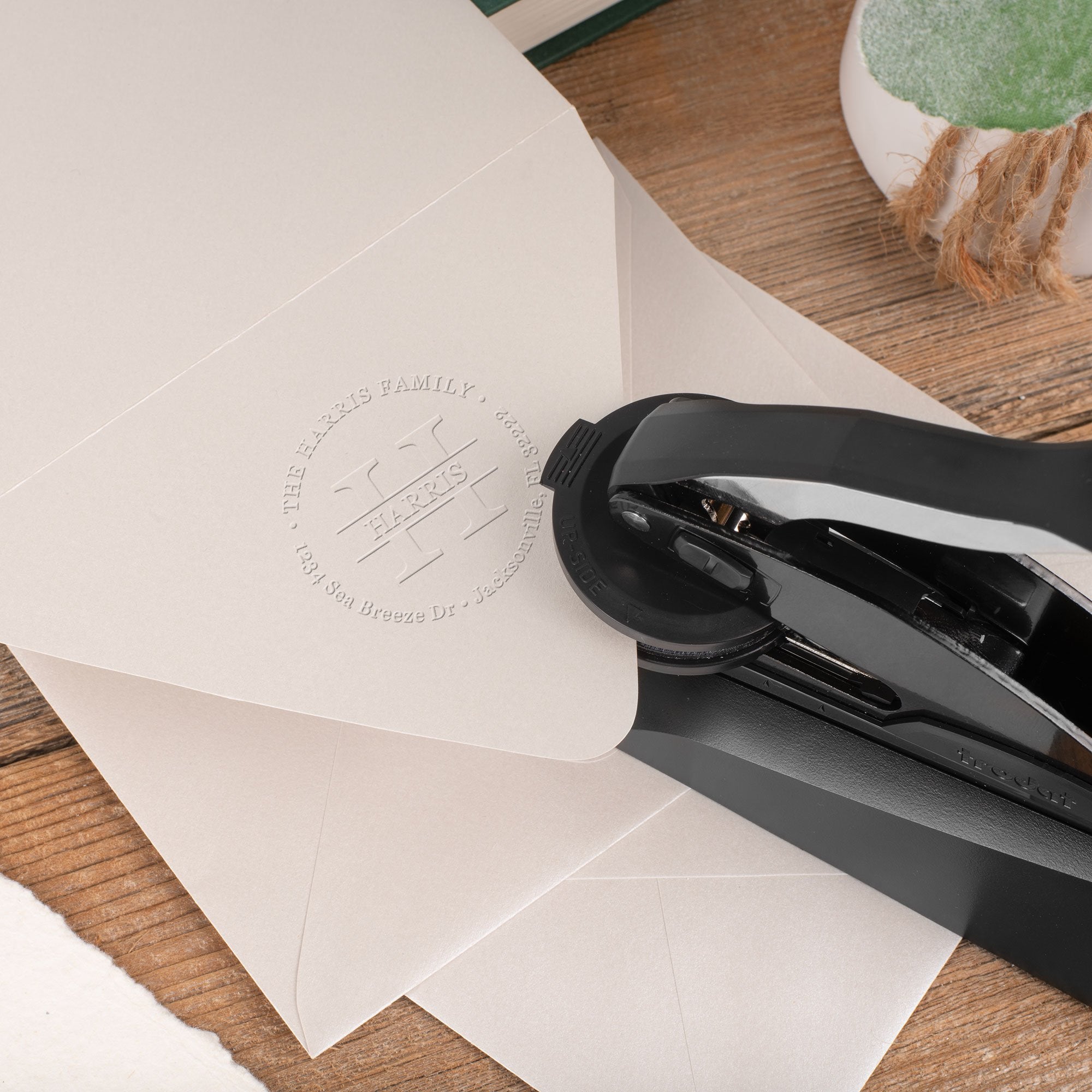 Our embossers are often used for Notary, Architect, Engineer or other Professional and feature quality parts for long term use. Our embosser inserts use a delrin plastic laser cut to match your design and are best used medium weight card stock or standard paper.