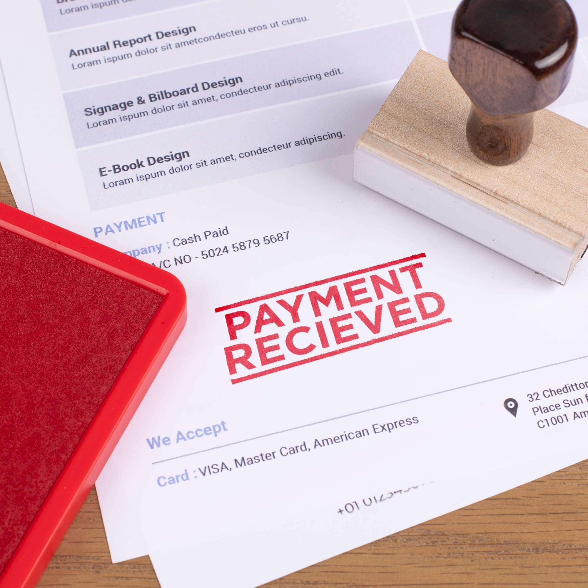 - Laser engraved rubber stamp attached to solid wood base