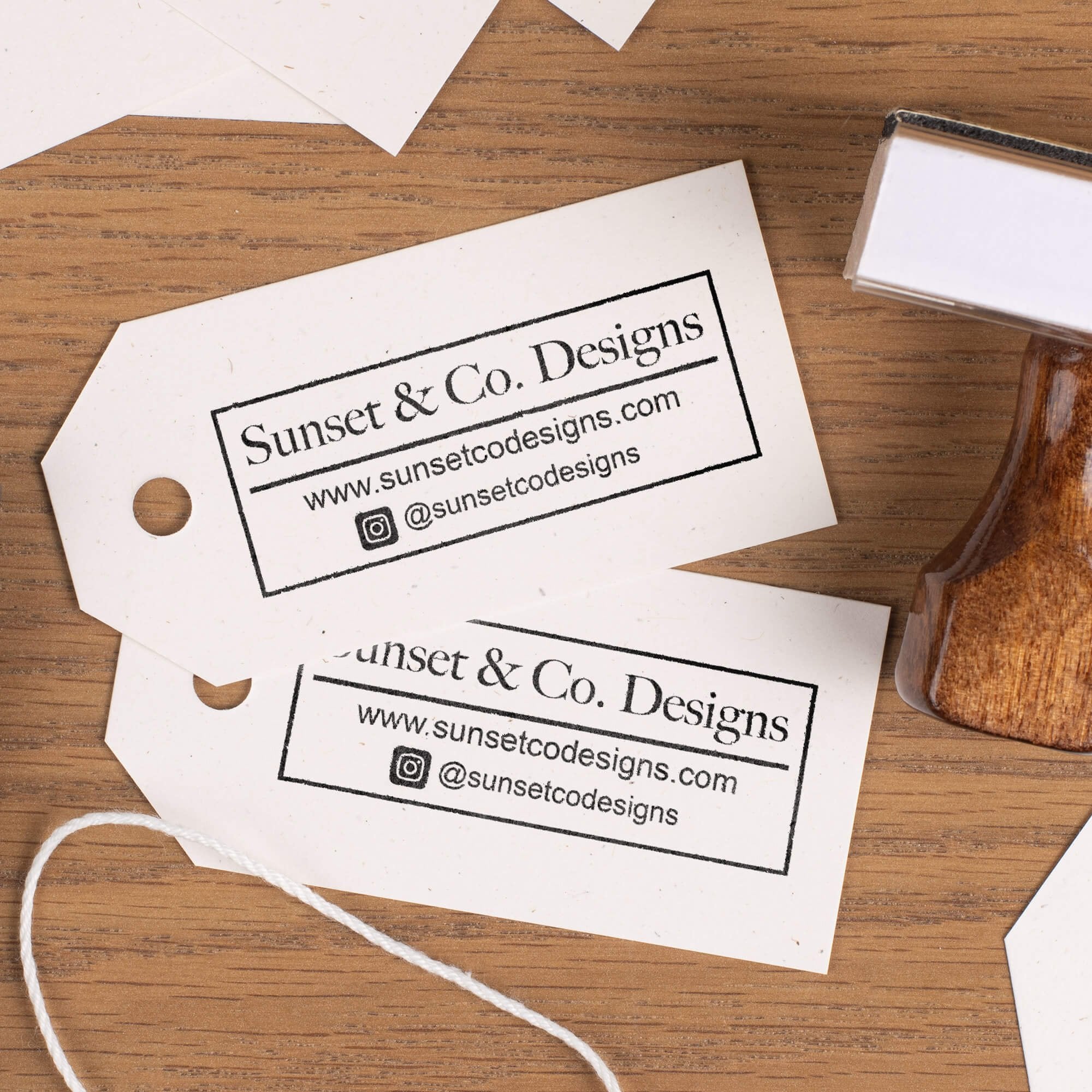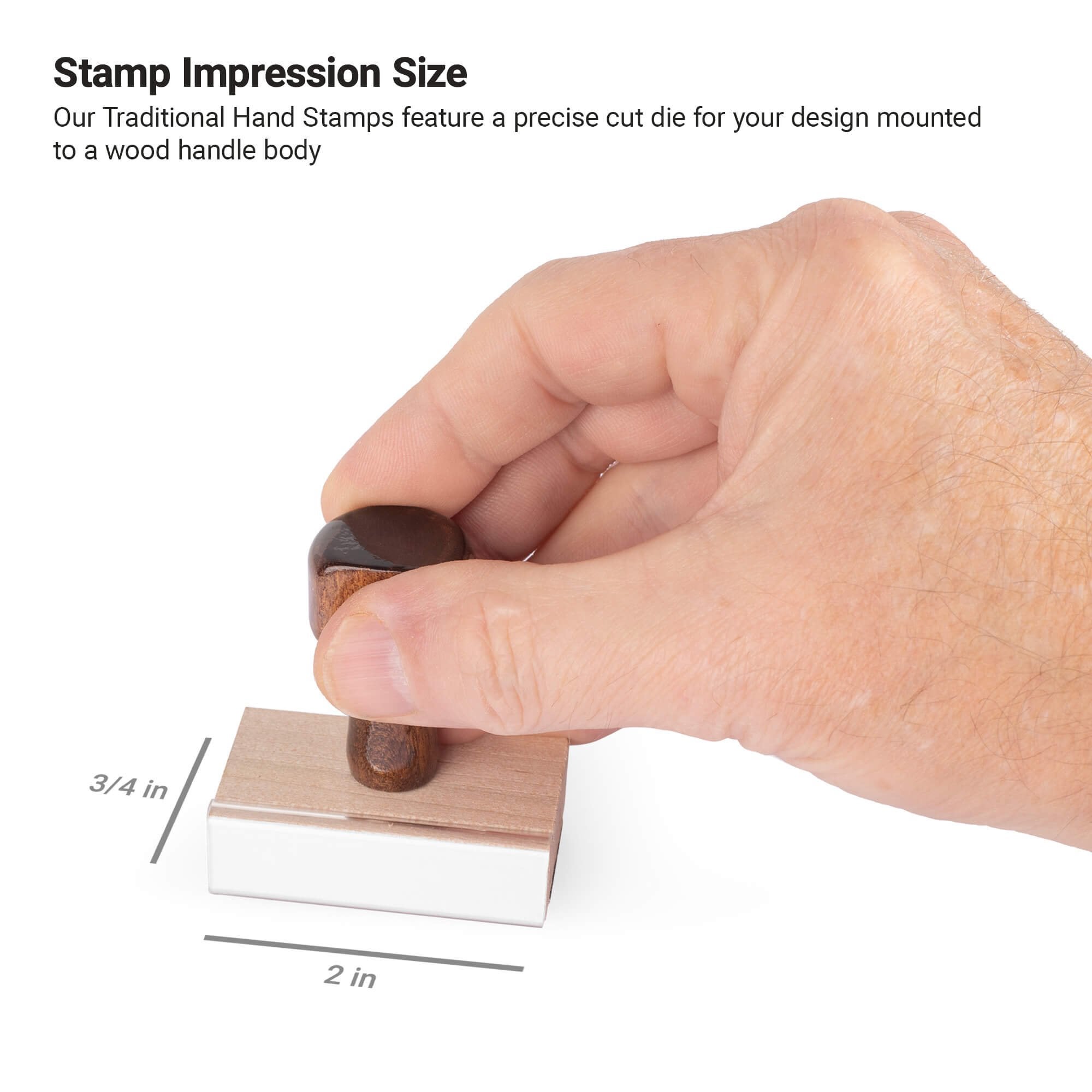 Our traditional hand stamps are a classic way to efficiently imprint your personalized designs. Your custom design is laser engraved onto a rubber die and precisely secured onto each solid wood stamp body. Made from the highest quality workmanship, our wood handle stamps are made to last.