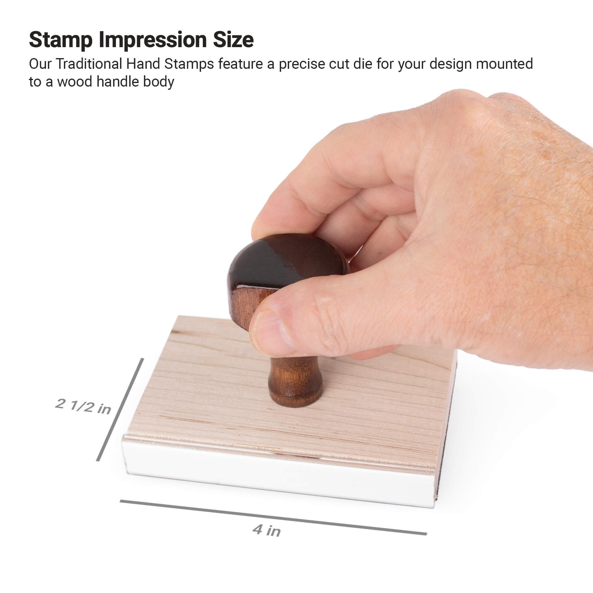 Our traditional hand stamps are a classic way to efficiently imprint your personalized designs. Your custom design is laser engraved onto a rubber die and precisely secured onto each solid wood stamp body. Made from the highest quality workmanship, our wood handle stamps are made to last.