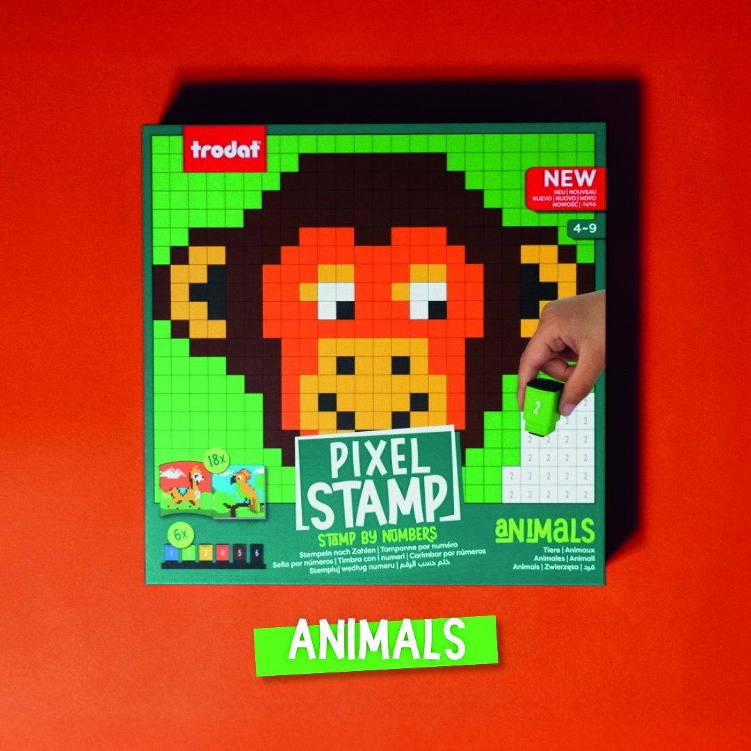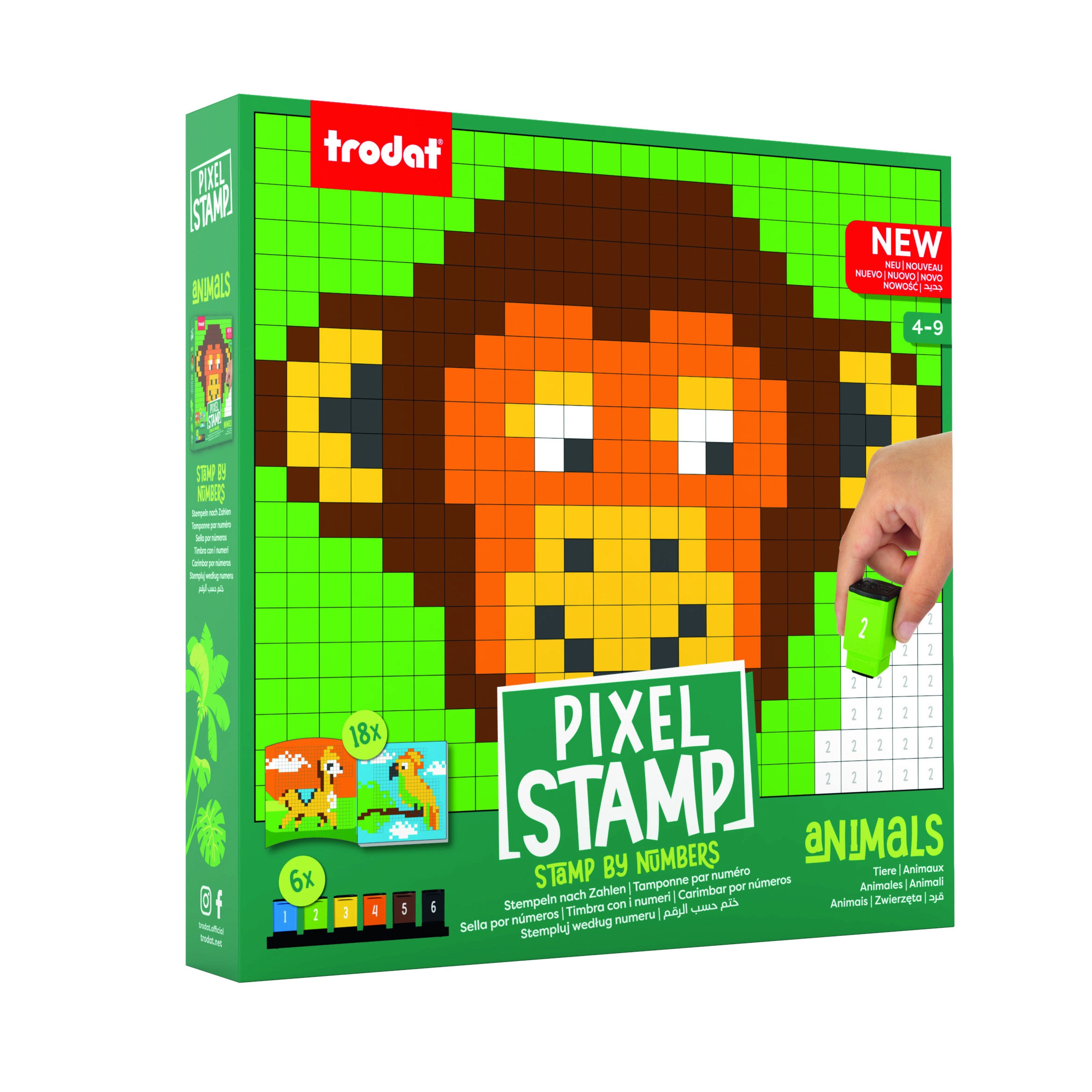 Bring adorable animals to life — one colorful stamp at a time. The Trodat Pixel Stamp Animals Kit combines pixel art with a simple “stamp by numbers” system, allowing kids to reveal 18 different animal designs through guided stamping. It’s hands-on, screen-free fun designed especially for ages 4–9.
